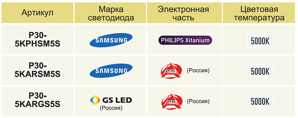 P30-3KPHSM5S – модель с цветовой температурой 3000K. (Теплый)