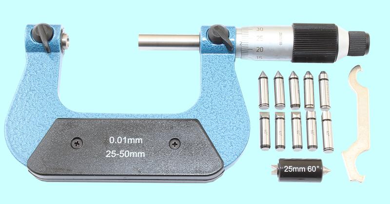 Микрометр Резьбовой со вставками МВМ- 25, 0-25 мм (5 пар вставок) "TLX"