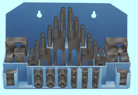 Набор предназначен для фиксации заготовок, деталей сложной формы при дальнейшей обработке на фрезерных, сверлильных и других станках , имеющих ширину паза 19.7-20мм на столе.