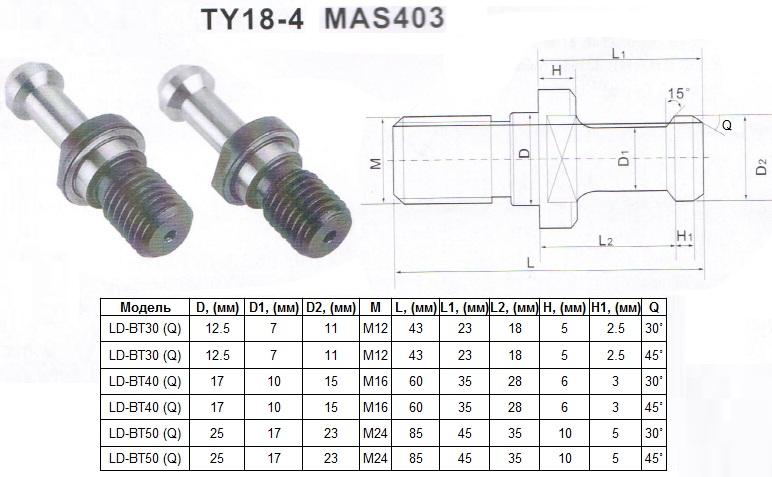 Штревель (затяжной винт) М16, D17мм, L60мм, Q45° под хв-к MAS403-7:24-BT40 "CNIC" (TY18-4)