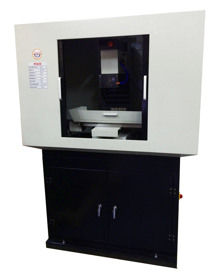 Высокоточные шариковые винты приводятся в движение асинхронными шаговыми двигателями по трем осям. Размер рабочего стола 500 х 180 мм.