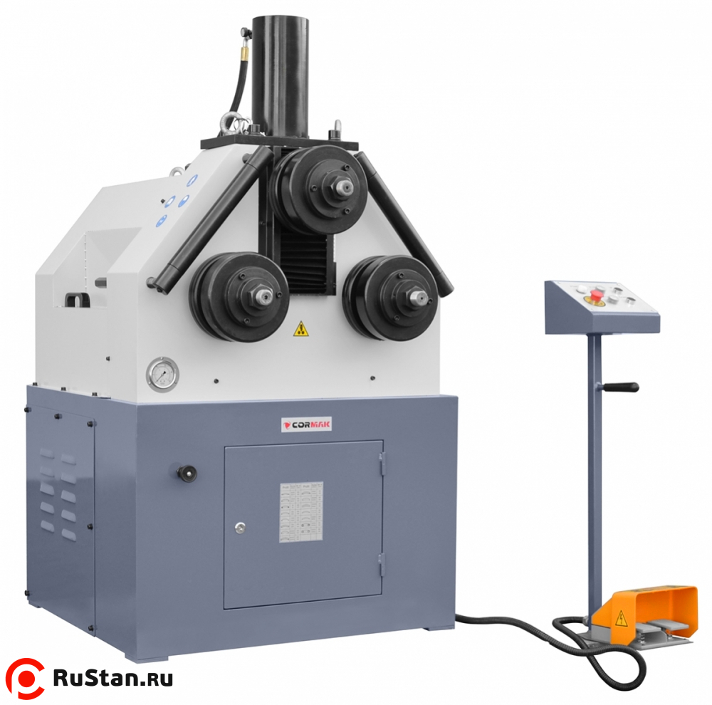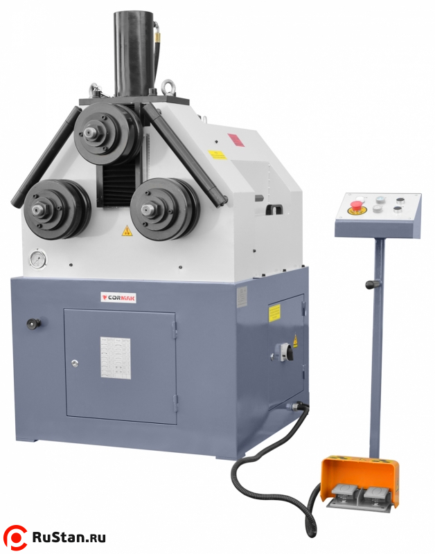 Гибочный станок для труб и профилей CORMAK RBM 65 имеет конструкцию из сварных стальных листов. Гидравлический гибочный станок характеризуется более высокой мощностью по сравнению с традиционными. Обе оси гибочного станка приводятся в движение при помощи сильного гидравлического двигателя, тогда как верхнее колесо поднимается с помощью гидравлического цилиндра оси. Контрольная панель с кнопками обеспечивает надежную работу станка. Стандартные гибочные ролики дают возможность гибки различных материалов в различных формах.