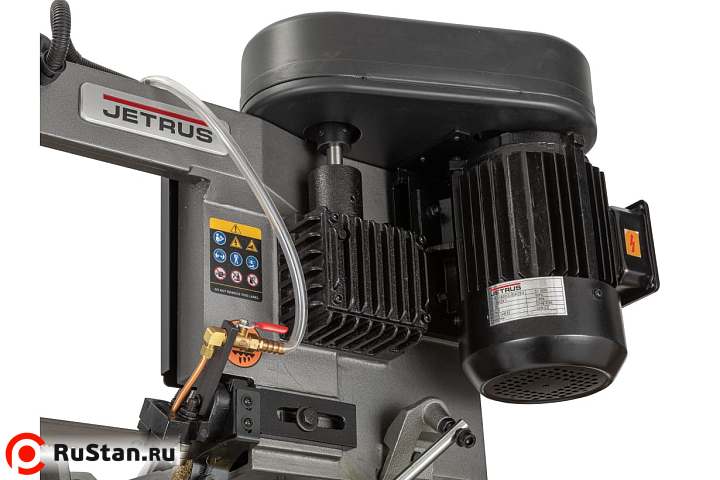 Моторная группа состоит из мощного электродвигателя - 1,1 кВт, обеспечивающего стабильную работу ленточного станка в различных скоростных режимах. Ременная передача позволяет осуществлять пиление заготовок на скоростях движения ленточного полотна в 26, 50, 73 и 95 м/мин. Управление работой станка осуществляется с пульта управления, установленного на консоли. Оборудование оснащено кнопкой аварийной остановки.