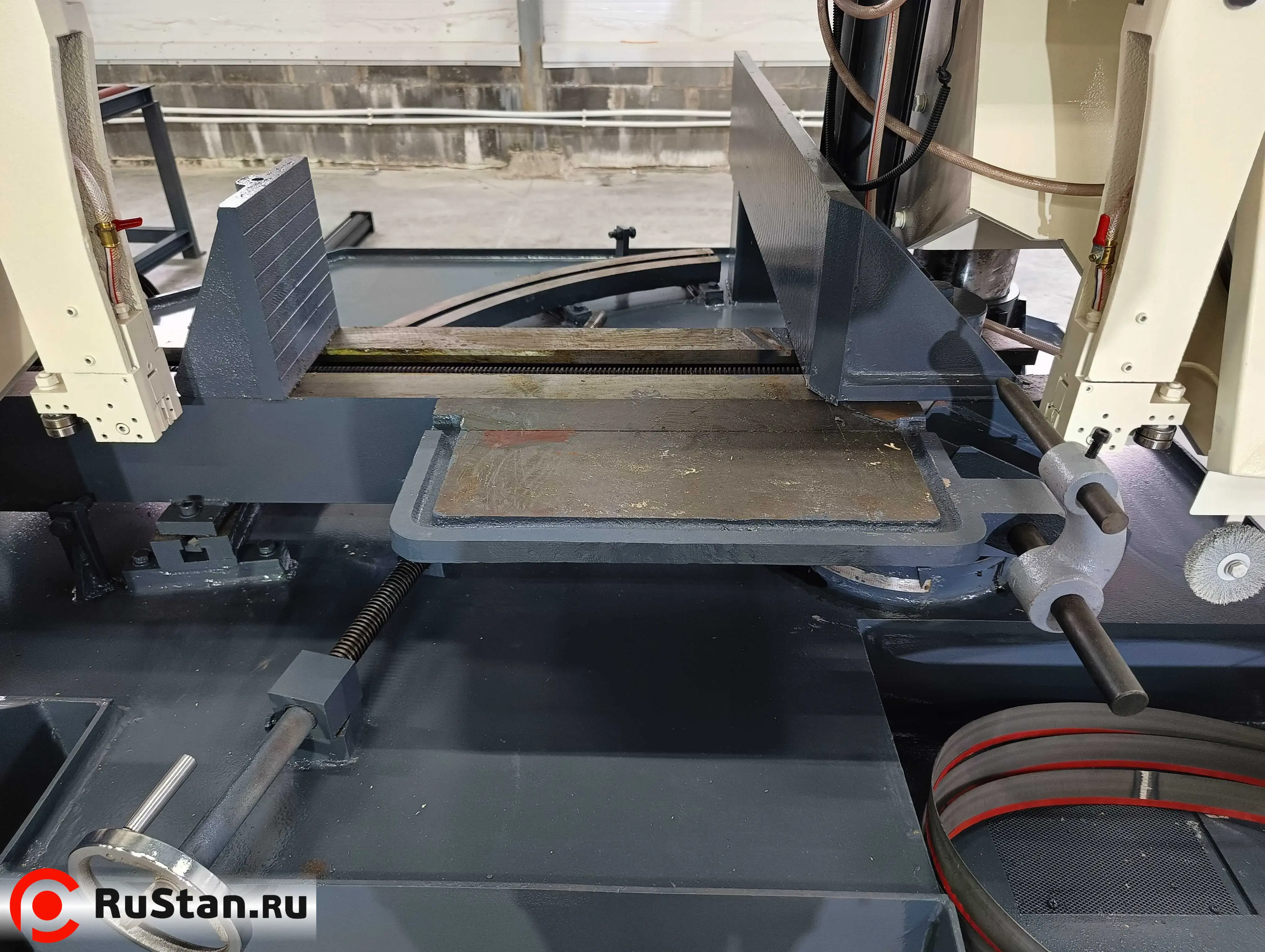 Станок за счет поворота рамы способен обрабатывать заготовки под углом до 60 градусов. GB4240X станок колонного типа, что позволяет делать рез ровным.
