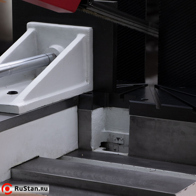 Модель оснащена гидравлическими тисками и гидроприводом с регулировкой подачи пильной рамы на деталь при резке.