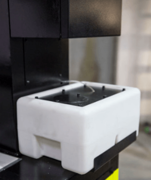 Станок оснащен воздушно-масляным охлаждением, для работы требуется подключение внешнего источника сжатого воздуха. В комплект входят: гильотина для резки полотна, сварочный аппарат для соединения полотна, круг для шлифовки краёв полотна и сварного шва.