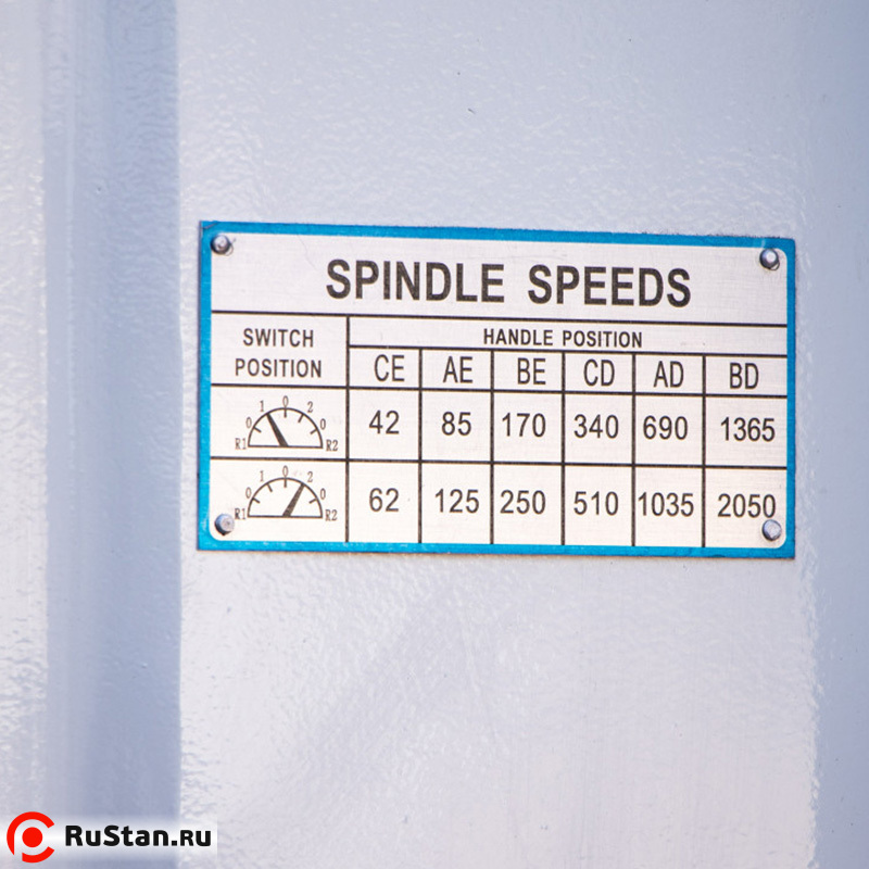 Скорость вращения шпинделя 42, 62, 85, 125, 170, 250, 340, 510, 690, 1 035, 1 365, 2 050 об/мин