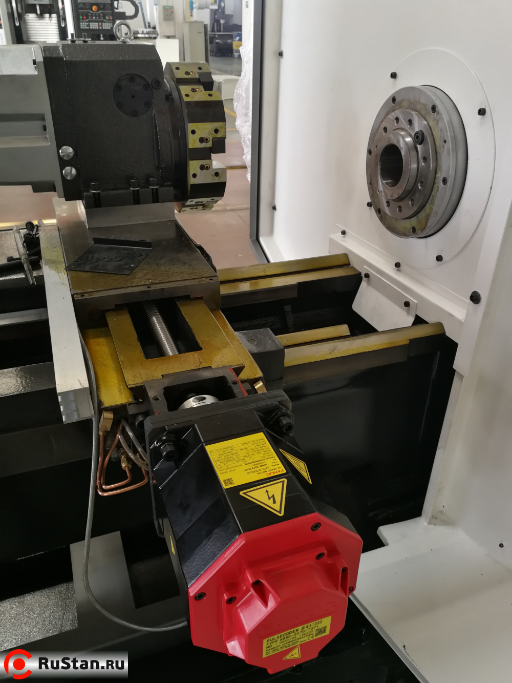 В базовой комплектации серводвигатель шпинделя CTB-47P5ZXC10-40, номинальной мощностью 7,5 кВт (максимальная 11 кВт, время работы ограничено 30 мин.) поддерживающий постоянство скорости резания при изменении диаметра детали. Позволяет жёсткое нарезание резьбы метчиком. Максимальный крутящий момент развиваемы на шпинделе 262 Нм.