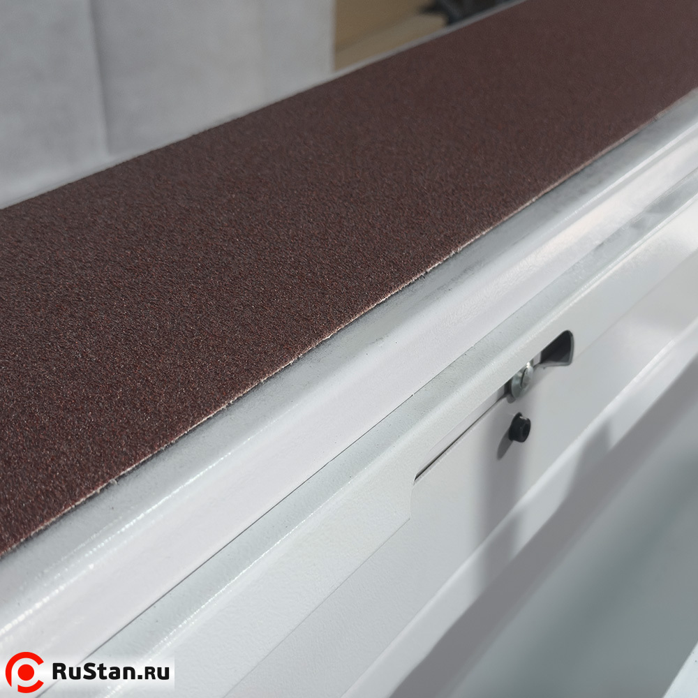 Рабочим органом здесь является абразивная бесконечная лента. Посредством ее вращения над столом, на котором размещается заготовка из дерева, производится работа станка. Стол также может двигаться. Ленточный шлифовальный станок обрабатывает заготовки окон, дверей, лестниц, стульев, элементов мягкой мебели и др.